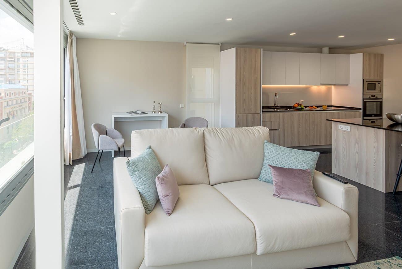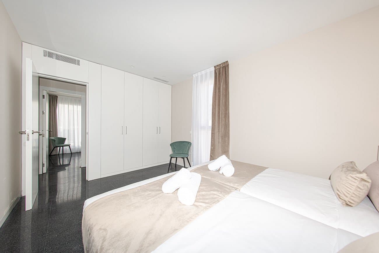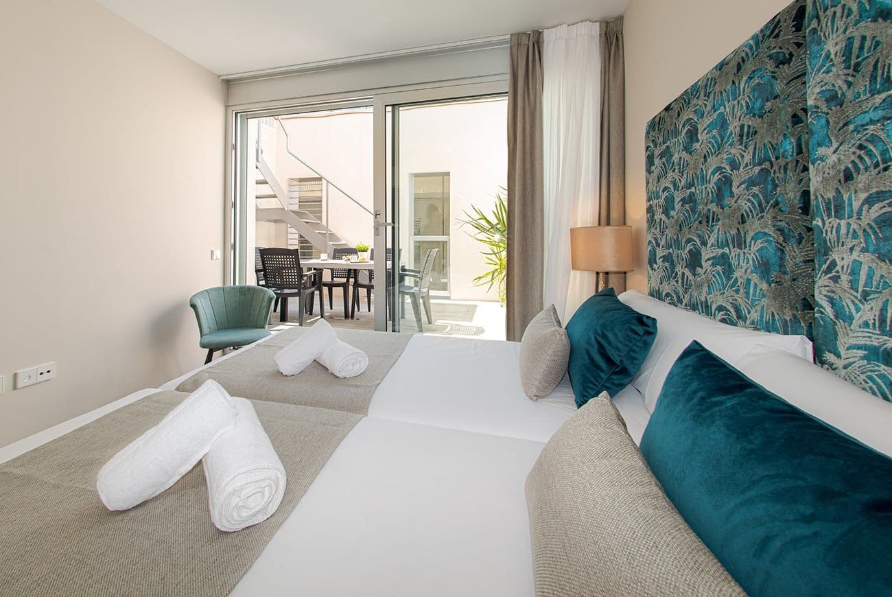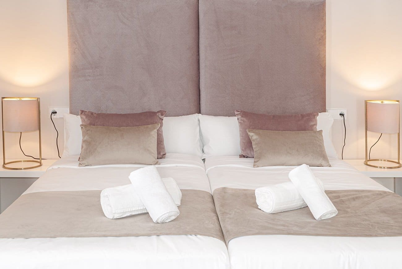 Coronando la cima del Edificio Rambla 24 encontramos el espectacular Ático, con Terraza a doble altura, con vistas al Castillo Santa Bárbara. El amplio apartamento consta de tres habitaciones dobles y dos baños completos, uno de ellos en suite y adaptado, salón comedor con sofá cama, cocina completamente equipada con isla y taburetes. El apartamento Incluye una terraza privada a doble altura equipada con mesa, sillas y tumbonas.